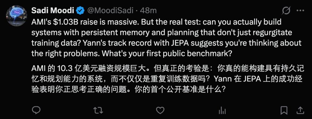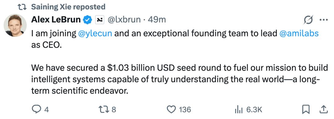 与此同时,原 FAIR 工程主管 Alex LeBrun 宣布就任 AMI 的 CEO。他表示,AMI 希望能构建能够真正理解现实世界的智能系统 —— 这是一项长期的科学事业。