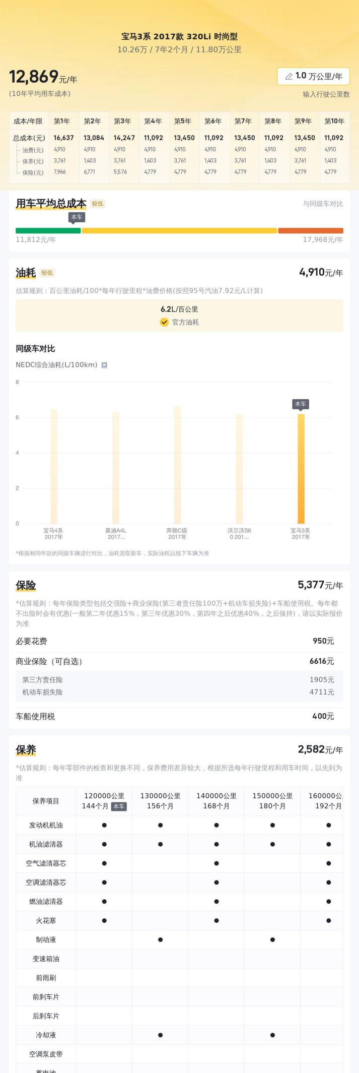 对于这台2017款的320Li来说,它的市场价在11.76万-14.51万之间,而它的报价是10.26万,低于市场行情价。这或许是一个不错的入手时机。但是,我们也要考虑到它的过户次数较多,达到了4次。这可能会对车辆的价值产生一定的影响。