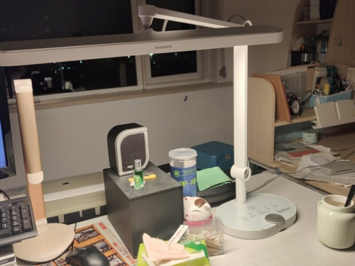 使用情况:霍尼韦尔智能台灯X5在护眼设计上,用了类太阳光光源。Sunturalux® 2.0 类太阳光光源,模拟自然天际光色;采用55cm宽幅灯头设计,内置216颗Sunturalux 2.0类太阳光芯片,不过实测下蓝光峰值较高。整灯风格偏简约现代,底座有触控板和调光旋钮,操作比较便捷,还附带50cm直尺和1.2米防滑桌垫。