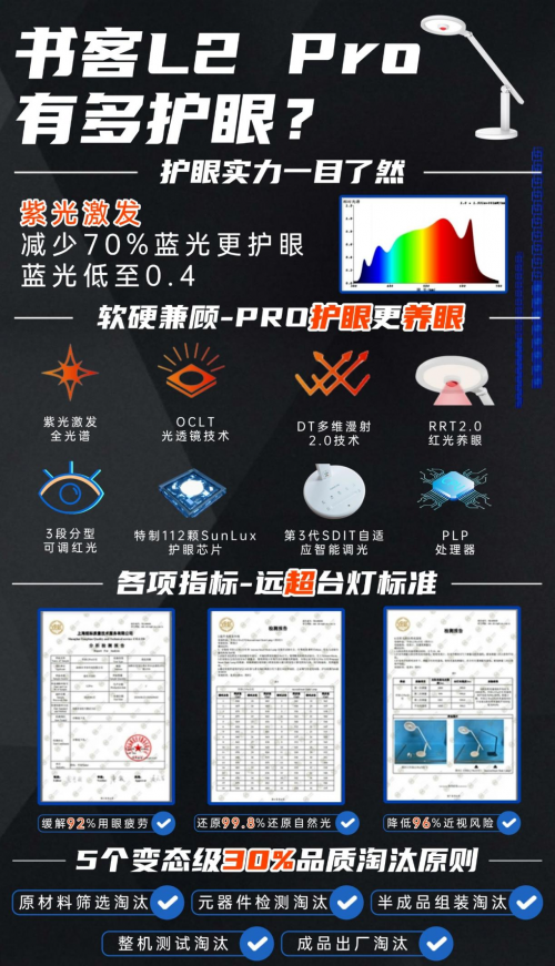 书客砍掉多余花哨功能,只为死磕“养护眼”技术,在光照均匀度、舒适感以及产品安全性等核心维度,是业内表现最好的,可以有效降低96%近视风险,缓解92%用眼疲劳,99.8%还原自然光!