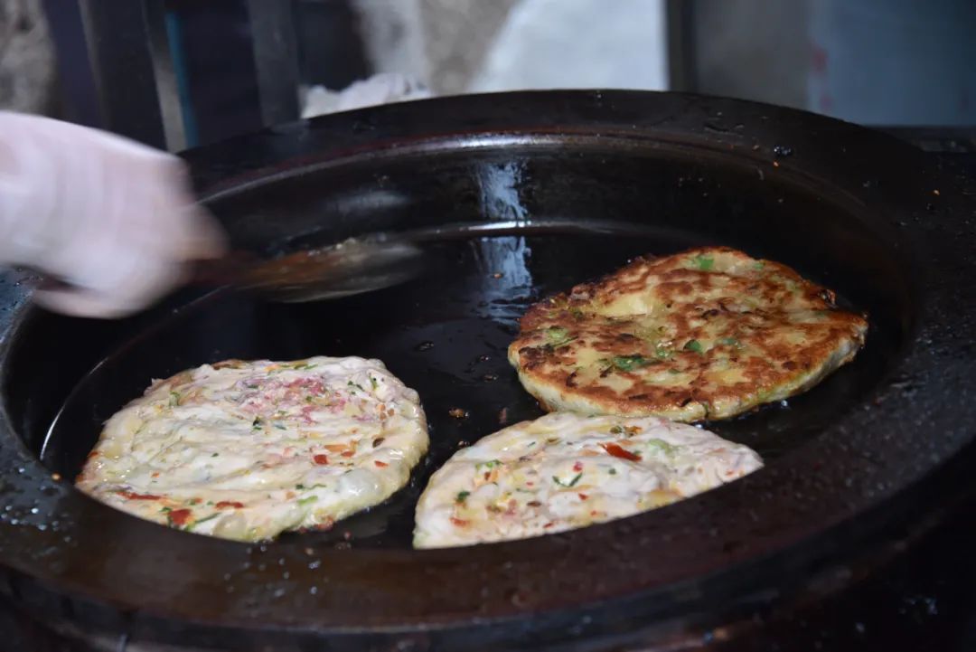 古城中的美食不少,刘二姐葱油饼5块钱一个,8块钱一碗的胡记焖肉米粉料多肉足,李水仙咖啡有通海限定的豆沫拿铁,还有剪子糖是本地特产,尤其是古城的财神街,有头到尾都是各种美食小吃。