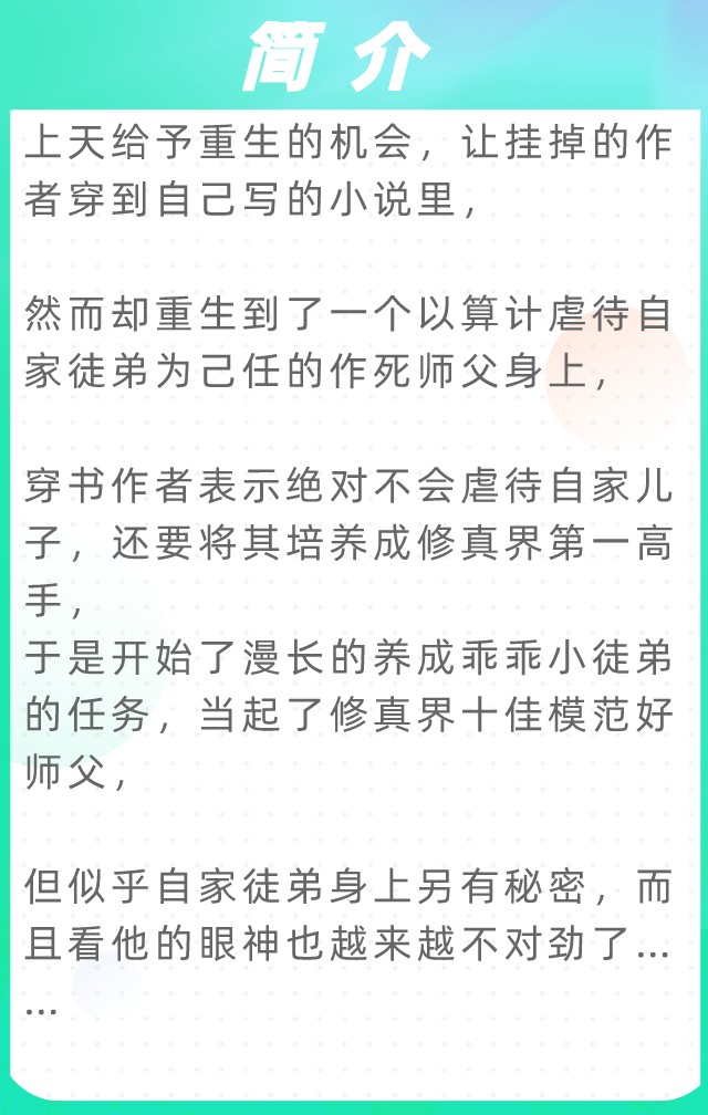 还好有师尊的加持,才能让他在多次的危难时候幸免于难,但他情商太低,浪费了很多时间才知道自己对师尊的感情。本文两人互宠,感情线稳定,绝对的甜宠文,微虐情节请忽略,值得推荐。