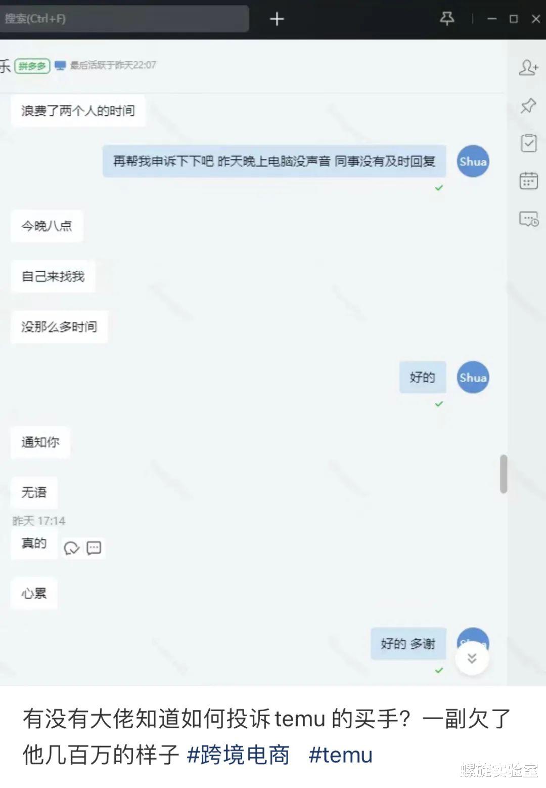一位Temu卖家向螺旋实验室吐槽道,有的时候消费者购买商品后,平台发错了货,这部分产生的售后损失可能也需要卖家来承担。