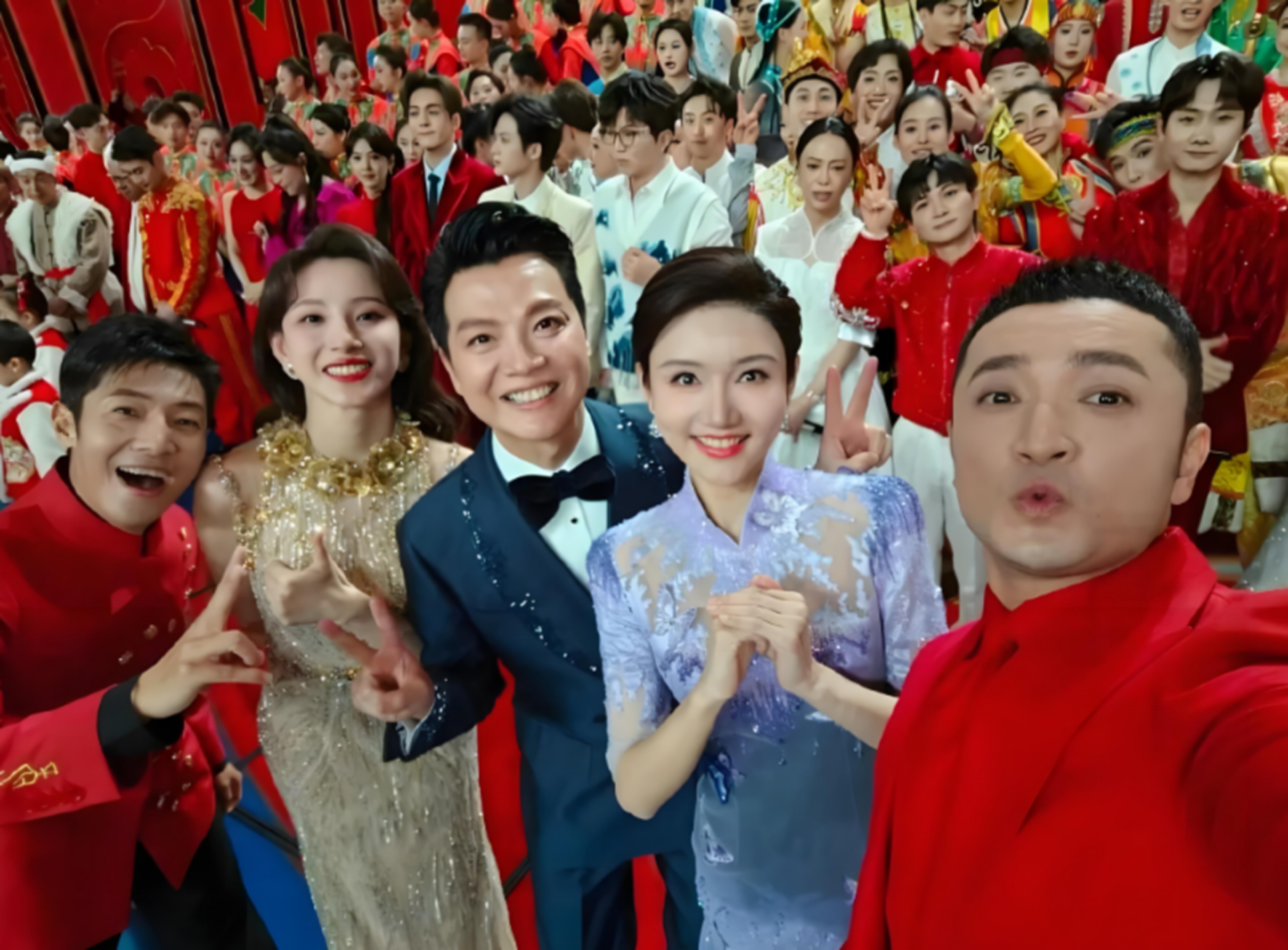 而在今年主会场5位主持人的合照中,他依然稳稳占据C位!