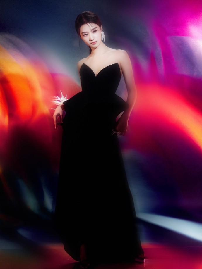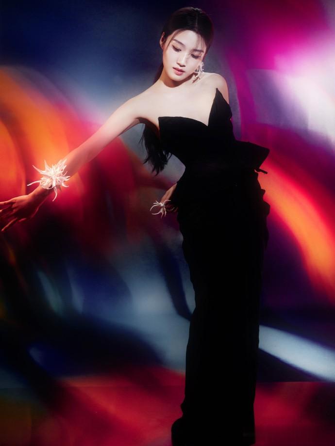 卢昱晓 黑裙裁碎霓虹的绚烂,在光影涡旋里伫立,以一身冷艳