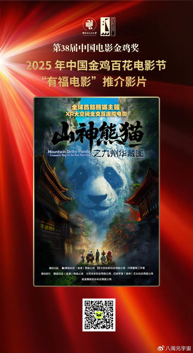 2025 年中国金鸡百花电影节期间,由熵链科技(福建)有限公司重磅出品的全球首部熊猫主题XR 大空间全交互虚拟电影《山神熊猫之九州华藏图》,作为第 38 届中国电影金鸡奖“有福电影”重点推介影片精彩亮相。该作品以原创“山神熊猫”IP 为文化核心,凭借XR 技术与互动影像的深度融合构建沉浸式叙事空间,不仅成为本届电影节跨界创新领域的新亮点,更以“文旅+电影”的复合交互模式,为文化与科技融合领域的创新发展提供了鲜活案例,为数字文化示范建设提供有力支撑。