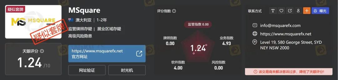 看监管,正规平台有合规监管牌照,Msquare却在官网“套牌”别人的牌照(外汇天眼标红“疑似套牌”)。监管是平台的“身份证”,套牌就像“拿别人身份证装好人”,一看就有鬼;