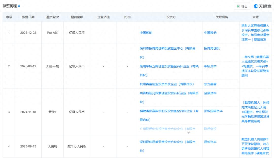 资料显示,目前中国移动致力于打造自主可控的具身智能产业闭环,已形成覆盖“具身智能—本体制造—核心零部件”的全产业链投资布局——本次对戴盟机器人的投资正是相关投资事件之一。