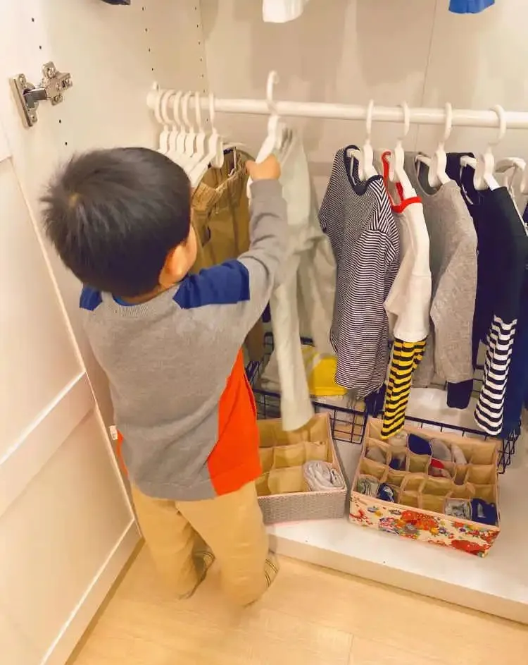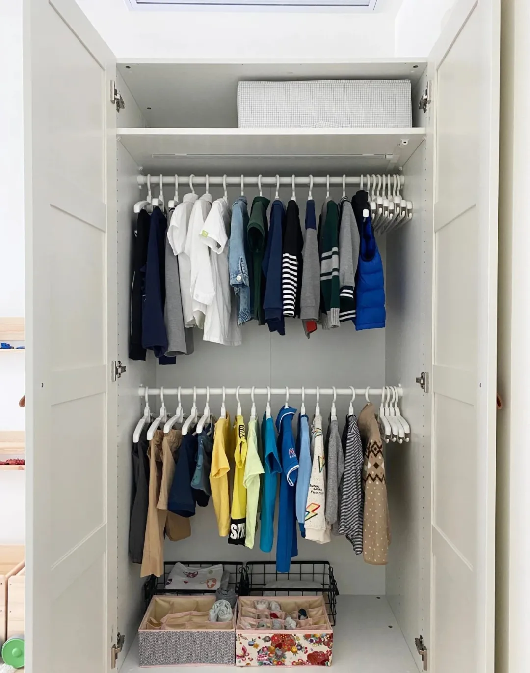 这位主妇通过巧妙的衣柜布局,满足了夫妻两人的衣物收纳需求。