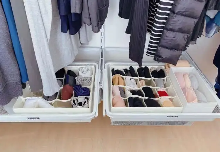 五斗柜和壁挂薄柜的设计,更是将内衣、袜子等小物收纳得井井有条。