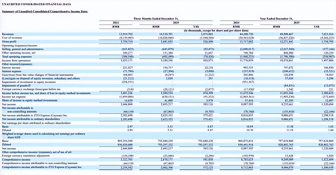 中通快递的毛利率从2024年的31.0%降至2025年的25.0%,成本的大幅增长严重侵蚀了利润空间。