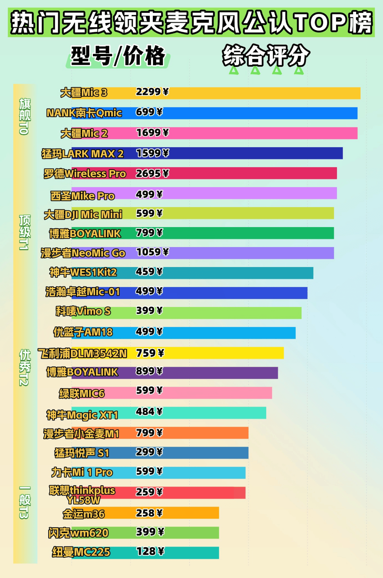 下面我给大家整理了几款我自己用过的各方面指数都比较不错的领夹麦来供大家参考: