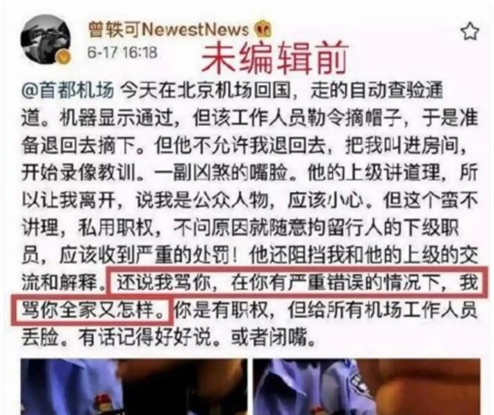 事情起因是机场安检。曾轶可因为不愿意配合工作人员脱帽进行人像对比检查,多次不听指挥,最终被民警要求进行复核。结果呢?她直接在网络上曝光了民警的身份证明照片,公开辱骂工作人员滥用职权。她的这种行为不仅引发争议,更涉嫌严重侵犯隐私权。