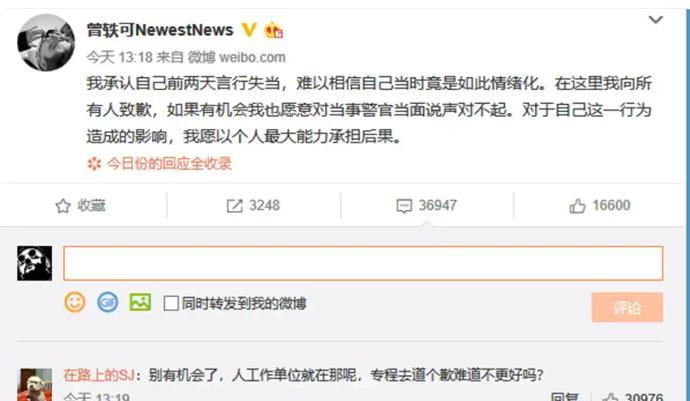 社会对明星的容忍度向来有限,尤其是在道德问题上。尽管事后她道歉了,甚至声称愿意亲自向被曝光的警官说声对不起,但负面影响已经造成。很多粉丝都表示,对曾轶可的行为“无法认同”,最终她也因这一事件失去了大量资源和路人缘。
