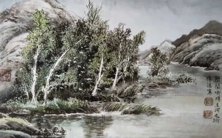 中景:作为画面主体,需清晰表现结构层次,常置于水岸旁或主峰下。