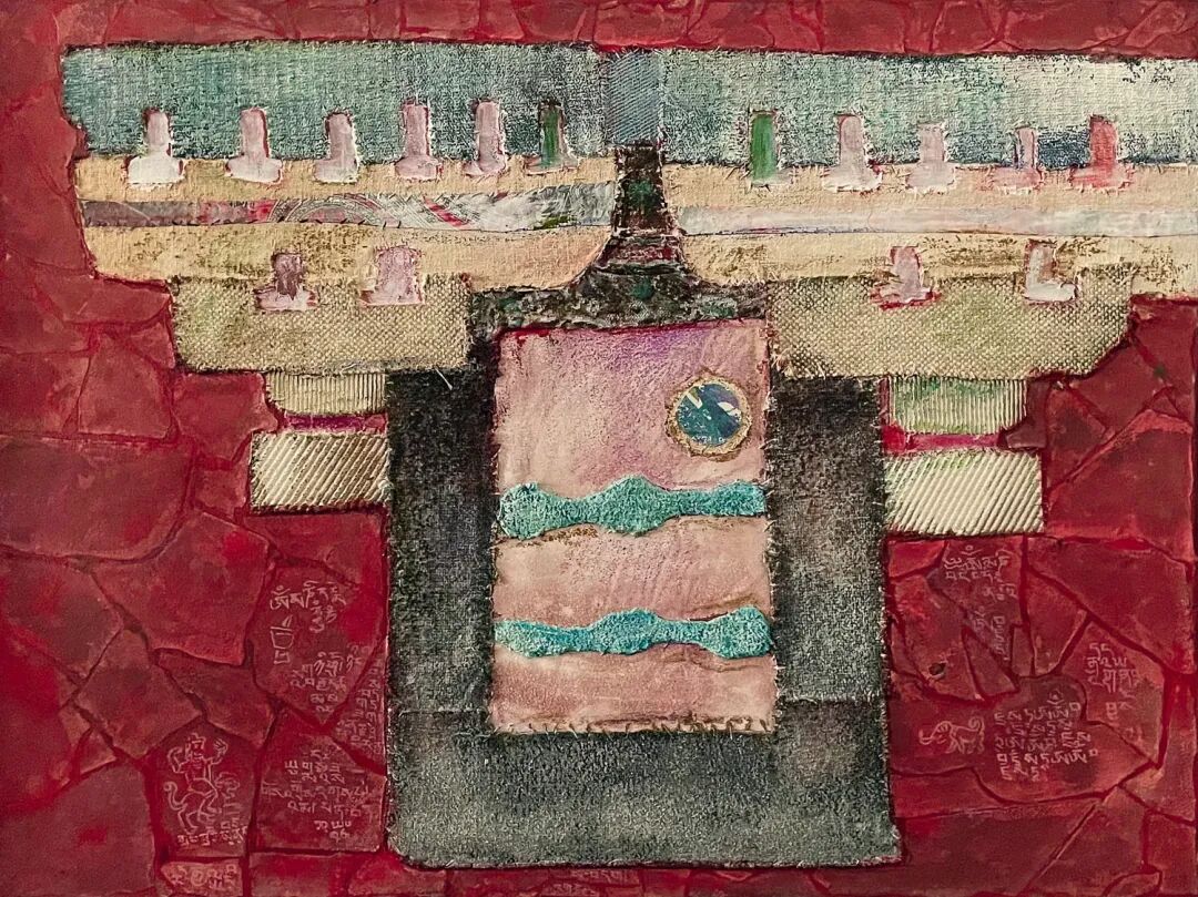 布面丙烯加拼贴