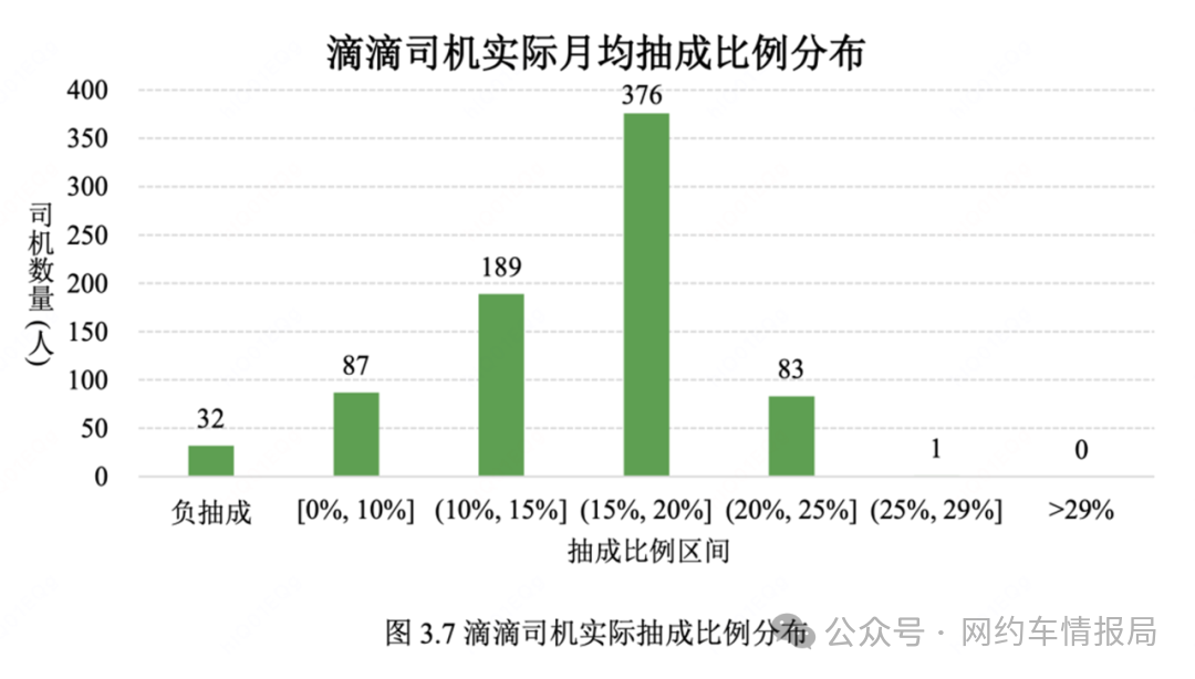 与此同时,近期清华大学团队发布的一个实测报告,跨越多个省市,取样894个滴司机数据,结果显示滴滴司机月度平均抽成15.3%,9成司机月均抽成低于20%。