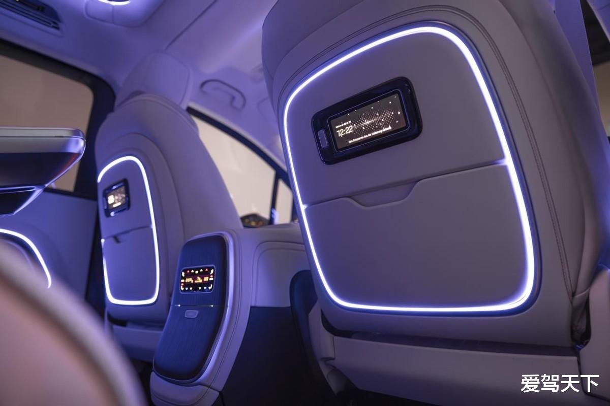 车尾设计相对简洁,半环形灯带点亮后辨识度不低,大尺寸后风挡玻璃支持单独开启,日常拿取物品倒是挺实用。颜值或许没能一眼入魂,但0.25Cd的超低风阻系数,证明奔驰VLE在空气动力学上下真功夫。
