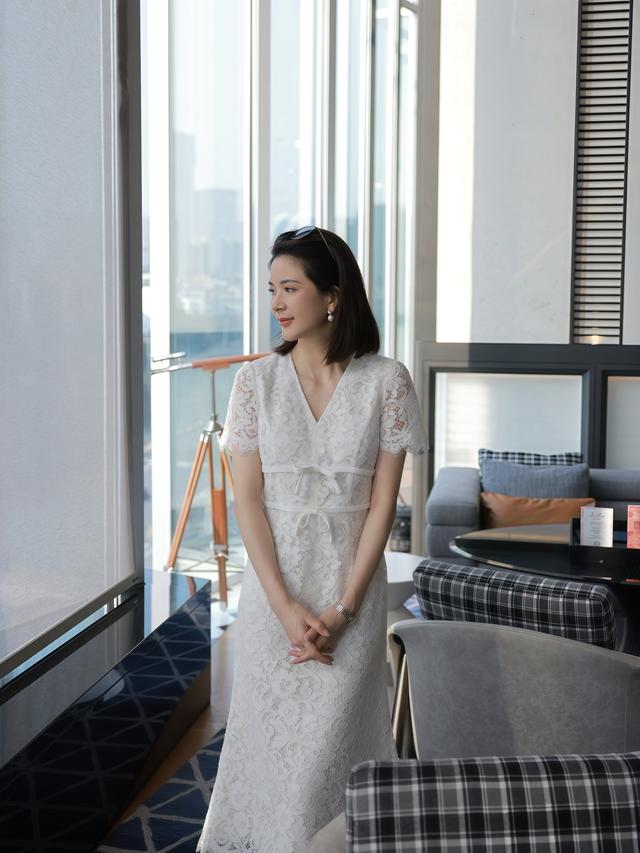 ”这条裙子上的蕾丝花纹,没有过度繁杂地堆积,而是通过疏密适宜、透气的镂空设计,营造出像呼吸一样,流畅的触感。