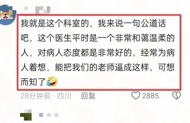 有的网友表示理解医生,因为医生平时工作太累了,每天要看好多患者,不光得看病、开药方,还得应付患者各种各样的情绪和要求。碰上患者一直不理解,还乱发脾气指责医生,再冷静、再有耐心的人,也得崩溃。