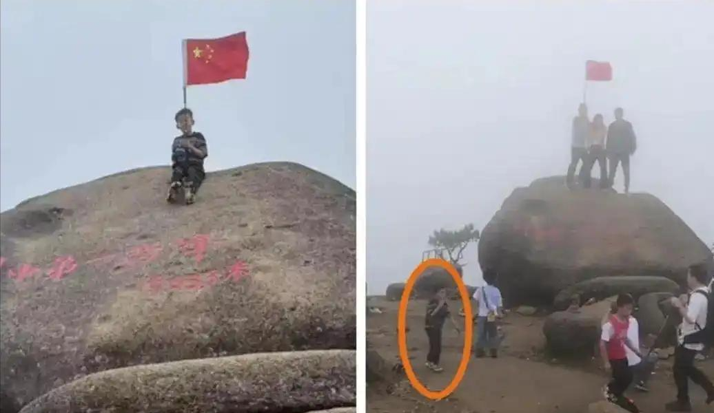 就在搜救展开的第二天,5月5日,一位游客提供了关键线索,他在翻看自己拍摄的视频时,意外发现了一个画面,一个穿着黑色条纹上衣、拿着小旗的小男孩,坐在山顶的一块石头上,笑得特别灿烂。