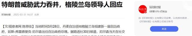 2、环球时报《特朗普威胁武力吞并,格陵兰岛领导人回应》