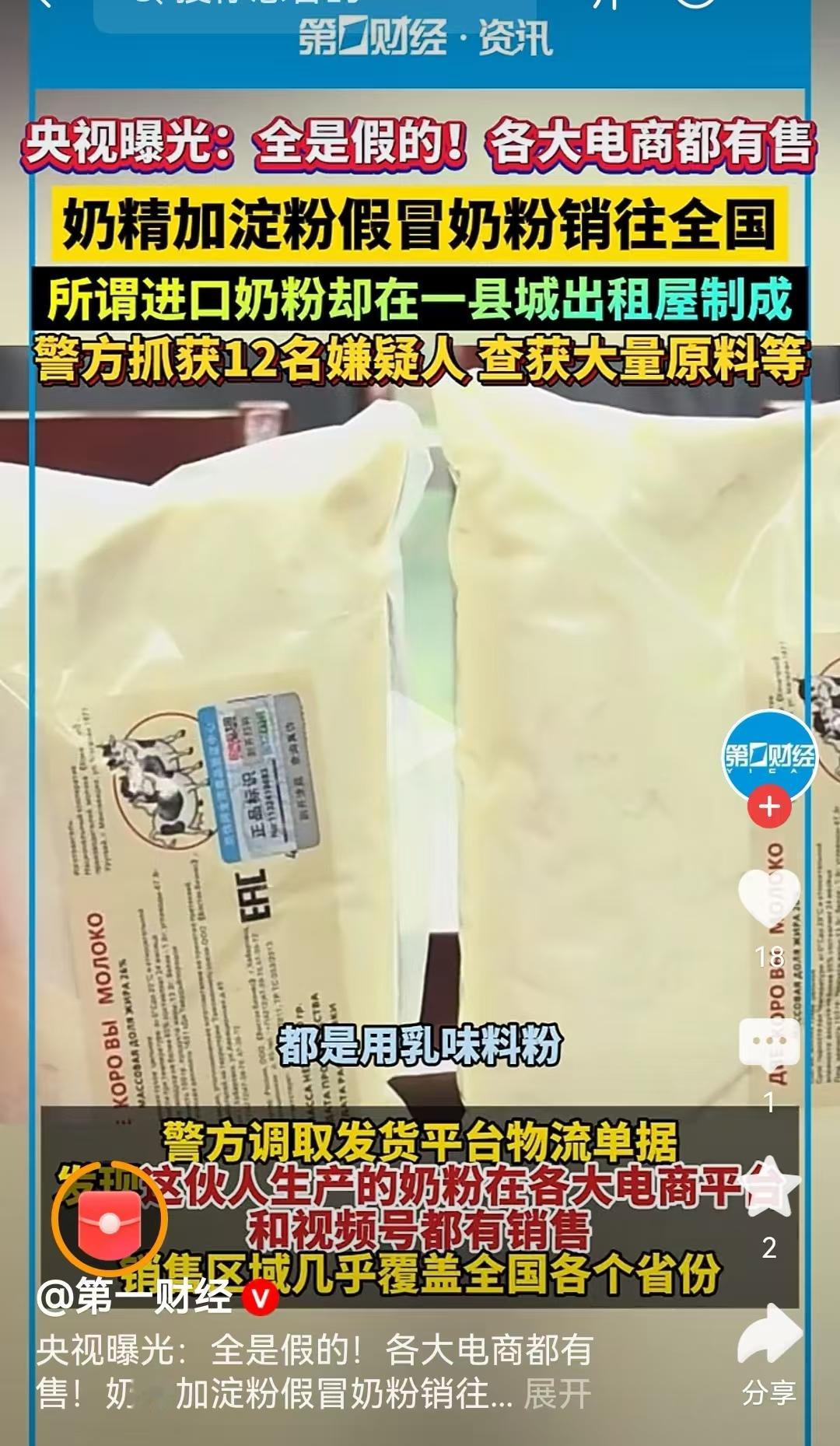 如何被发现的?他们没有被电商平台审核发现,也没有被用户发现,而是当地警方在例行走访时,闻到这沁人的奶香味儿觉得非常疑虑,本地没有奶牛生产基地,附近也没有奶粉加工厂,这个味道不对啊。于是心生疑惑,揭开了这起大案。