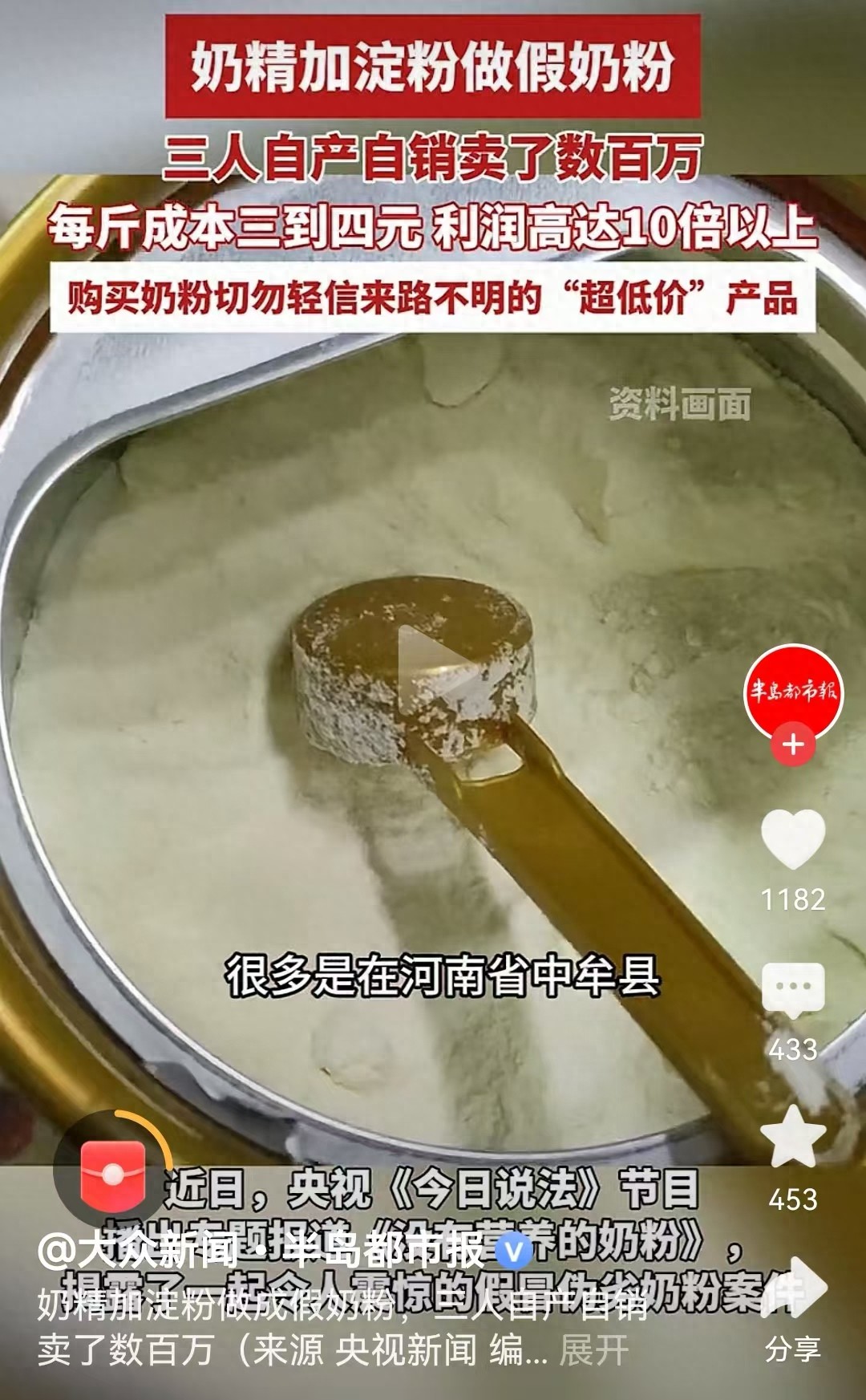 这种奶粉没有任何的营养价值,如果长期给孩子和老人服用,那简直就是害命。犯罪分子以所谓超低价售卖为噱头,他们闯过了电商平台的审核,雇佣网红进行带货,给予高额回扣比例,短短几个月就获利600多万元。