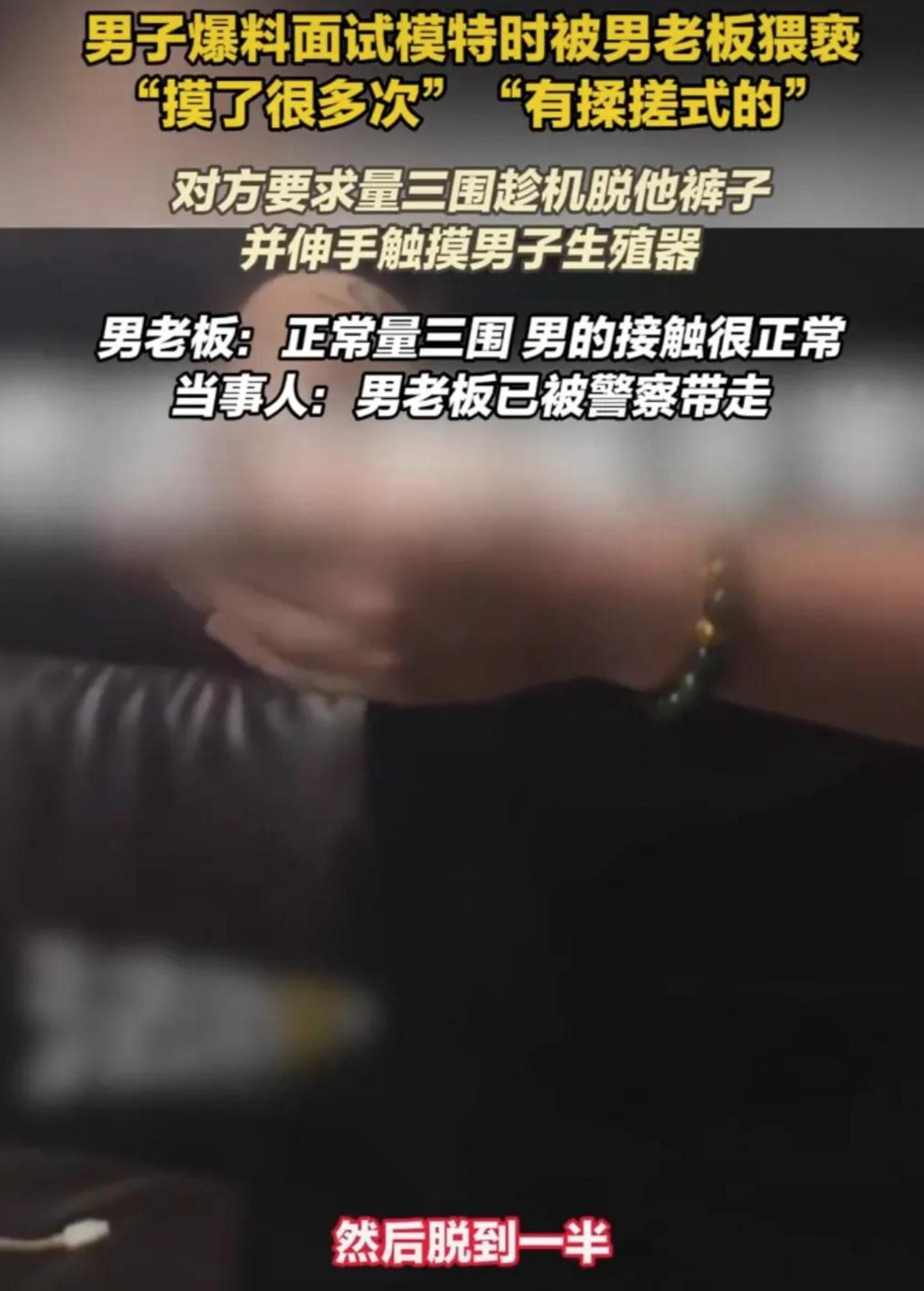面对男子的指控,男老板的回应却让人哭笑不得。他解释道:“我们这是模特面试,量三围是工作需要,大家都是男的,有点肢体接触很正常。”
