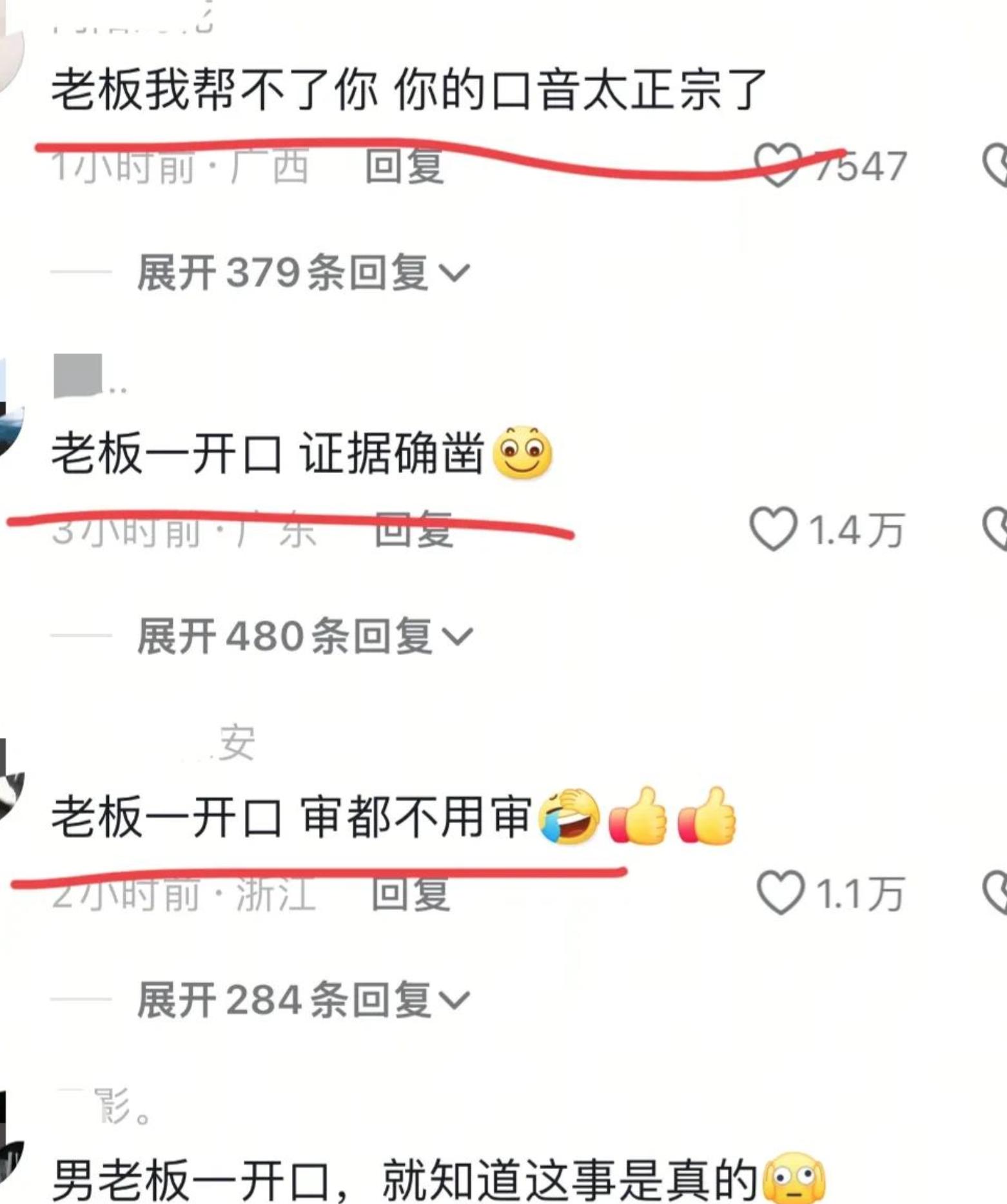 然而,这种辩解不仅没有平息舆论,反而让网友们更加愤怒。视频曝光后,男老板的讲话语气、表情和辩解内容,让大家瞬间“破案”,有网友评论道:“一开口就露馅了!审都不用审,真相一目了然!”