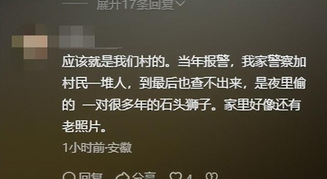 甚至还有网友说,其实这事情也能大概猜出经过,应该是17年前,有文物贩子四处奔走去收购文物,正好看上了他们村子门口这对石狮子。