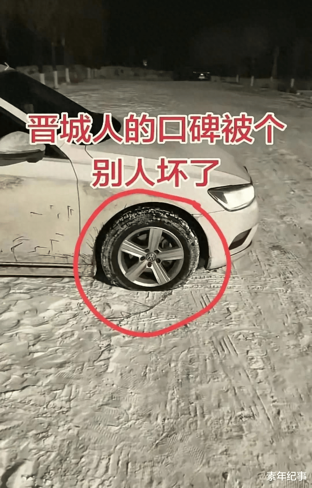 2026 年 1 月 2 日晚,元旦假期的山西晋城司徒小镇灯火通明,来自各地的游客沉浸在非遗表演和民俗体验的欢乐中。当晚 9 时 40 分许,第一批结束游玩的游客返回景区斜对面的四号停车场,准备驾车返程时,眼前的一幕让他们瞬间怒火中烧 —— 爱车的轮胎全部瘪了下去,凑近一看,每个轮胎的侧面都有一个精准的穿刺伤口,“一看就是用尖锐工具扎的,侧面破了根本没法补,只能换新胎!” 一位车主气愤地说。