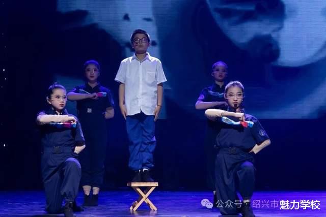 教师合奏《盛世国乐》将气氛推向高潮,彰显了师者匠心与教育情怀。诗朗诵《越地风骨》、平湖调《范蠡大夫颂》、表演唱《中国印》等节目,以艺术形式厚植家国情怀,坚定文化自信。此外,儿童群舞《门神哪小吒》童趣盎然、创意十足,以灵动舞姿演绎神话角色的勇敢与守护,展现出孩子们天马行空的想象力。