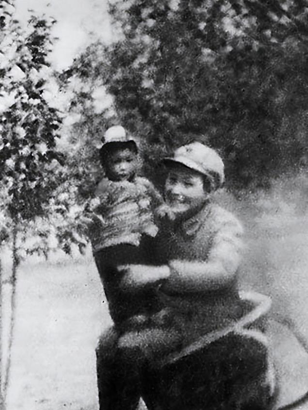 蹇先任用布带将孩子绑在胸前,跟着部队急行军几十公里,途中还要冒着敌机的轰炸。