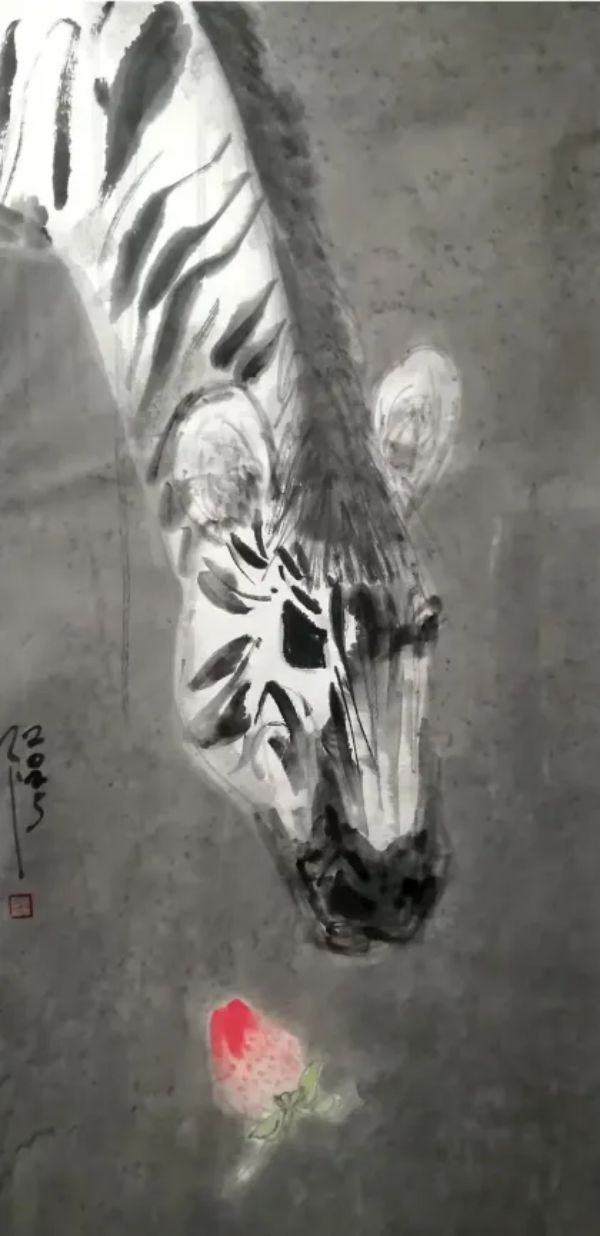步入《物象札记》的展览现场,那些跃然纸上的生灵、静默伫立的器物、充满动势的人物,无不散发着艺术家“目之所及”的温度与灵性。驻足于《千古之歌》前,能感受到线条韵律下澎湃的生命力;凝望那幅《尘烟》大面积的留白并非虚空,而是沉淀了岁月的回响,引人遐思。乙卜笔下的物象,超越了简单的形似,因其“情之所至的忘情”,而被赋予独特的人格与诗意。观者的脚步在画作前流连,心绪也随之在浪漫的想象与沉静的体悟间流转,这正是乙卜艺术“动人”之处的直观印证——他让寻常世界焕发出不寻常的光,邀请我们重新发现被忽略的日常之美。