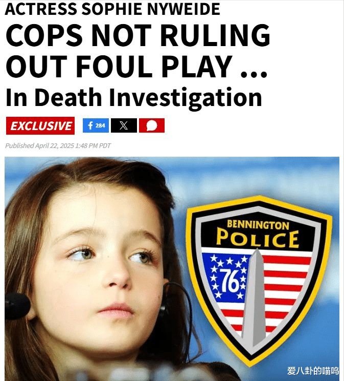 现在警方还没有公布苏菲·奈薇德的具体死因,不过警方也说她又可是被他人杀害,因为有目击者发现,苏菲·奈薇德曾和他人一起在附近游荡。