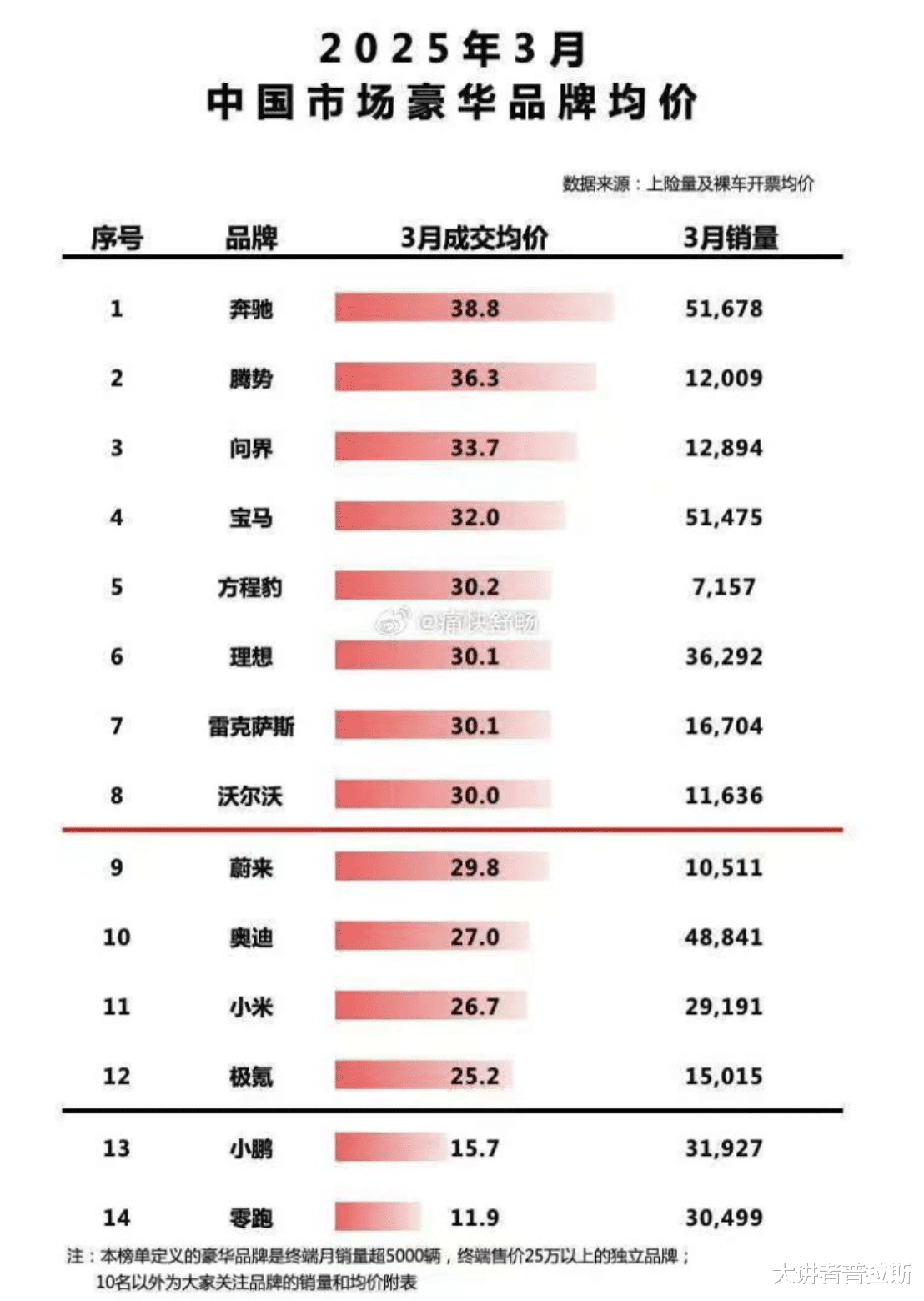 而且这已经是腾势汽车连续多月稳居豪华品牌成交均价前三。