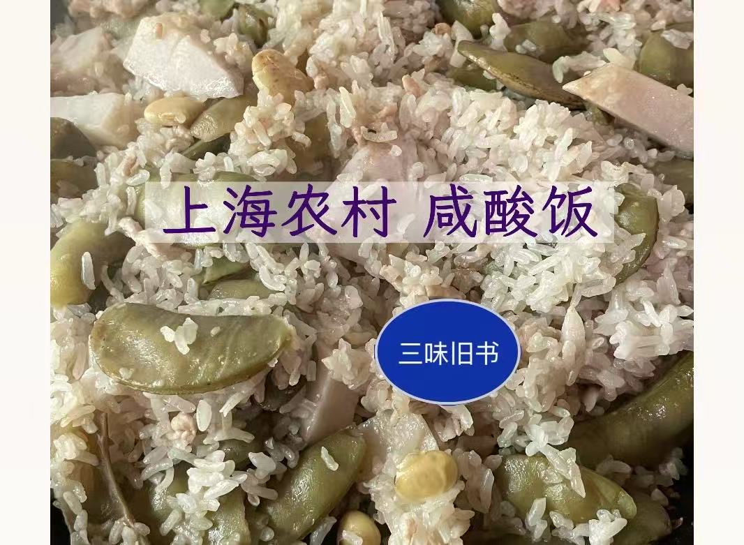 但在我们南汇地区,“咸酸饭”的概念更为宽泛。它还包括了豆类蔬菜和咸肉丁混合白米饭的组合,如寒豆咸酸饭、豇豆咸酸饭、扁豆咸酸饭等。
