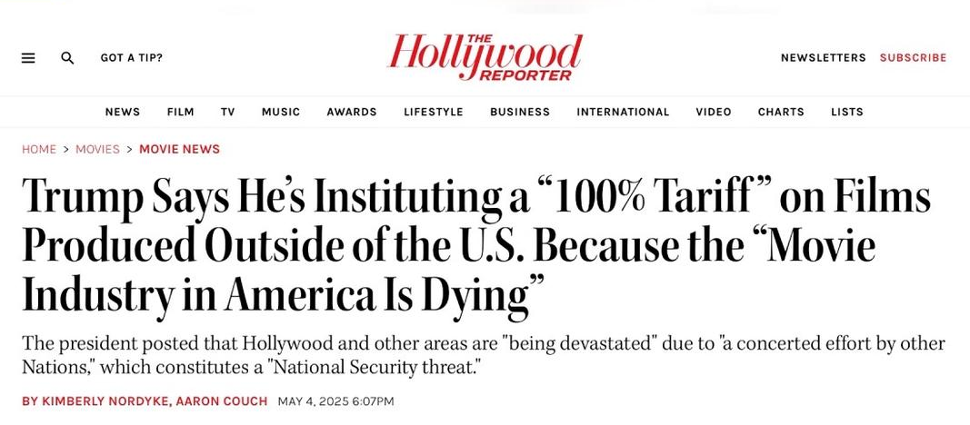 这个决定一出,便迅速在全球引起了轩然大波,为嘛?一是好莱坞电影一直一枝独秀、吊打全球,现在要征收关税,让人意外;二是电影作为服务贸易,通常不涉及关税,特朗普这么一搞,全球电影全要乱套。