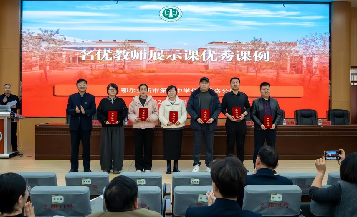 校领导依次为获奖教师代表颁发证书。热烈的掌声,既是对卓越者的真诚喝彩,也是对“赏识增信”理念的生动践行。这份荣誉,凝聚着耕耘者的汗水,更点燃了全体教师投身课改、追求卓越的坚定信心与澎湃动能。