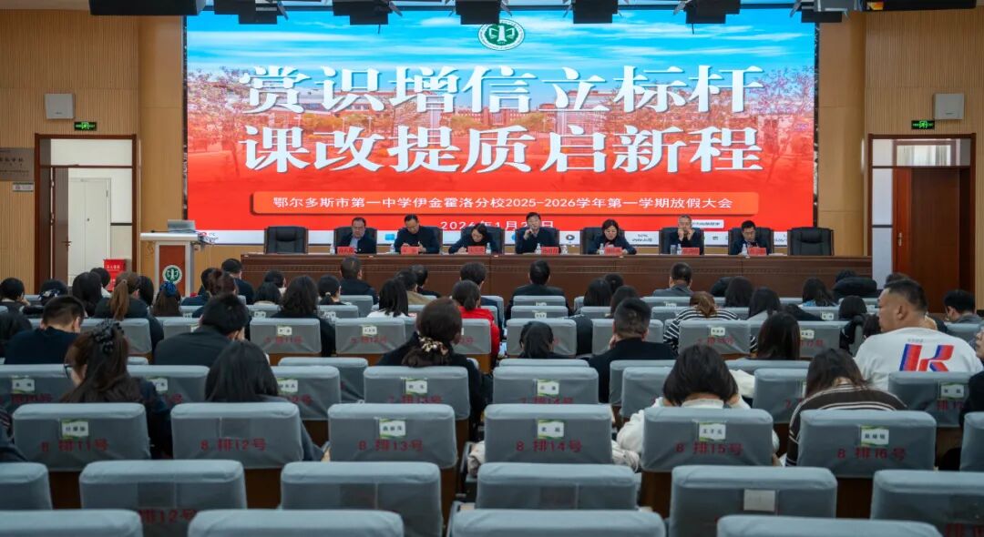 冬蕴硕果,春启新篇。1月24日上午,鄂尔多斯市第一中学伊金霍洛分校全体教职员工齐聚知行楼四楼会议室,隆重召开以“赏识增信立标杆 课改提质启新程” 为主题的2025-2026学年第一学期教学成果总结暨放假大会。大会通过成果分享立标杆、表彰先进增信心、系统总结明方向三大板块,全面回顾了一学期来教育教学改革的坚实足迹,擘画了学校高质量发展的崭新蓝图。