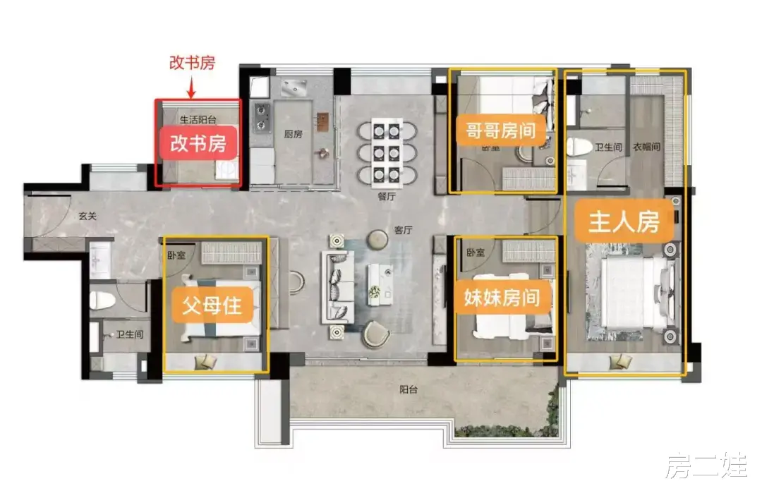 这么一看,4房就已经是必须品了。但其实,我自己还想要个独立的书房,方便我拍视频,做直播用。