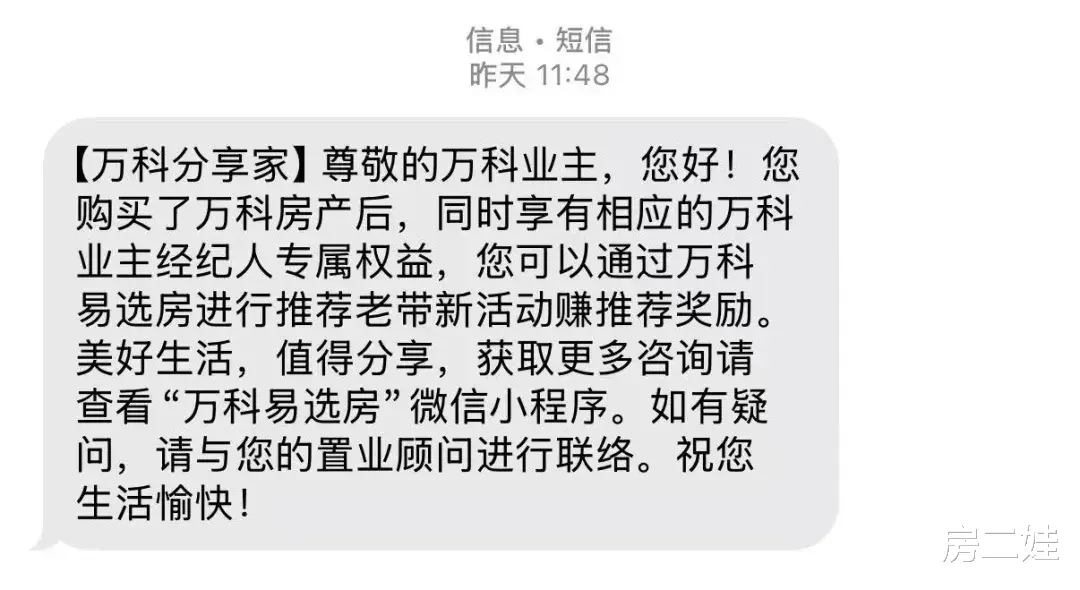 我打开一看,几个字很亮眼:“尊敬的万科业主,您好!”