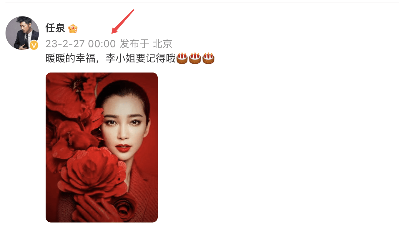 从2011年开始,任泉便开始每年准时为李冰冰送上祝福,对对方的称呼也是超多的,包括李小姐、小李子、美少女、宝贝等等。