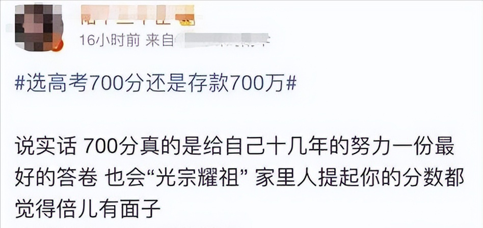 最近,一个假设性的问题在网络上引发热议:“如果让你选,高考700分和直接给你700万,你会怎么选?”有人毫不犹豫选择700万,认为金钱能解决现实问题;也有人坚持700分,认为知识带来的长期价值无法用金钱衡量。这场讨论背后,折射出的是当代年轻人对教育与财富的复杂态度。