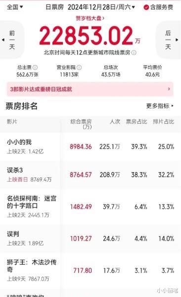 《小小的我》和《误杀3》表现尤其突出,票房都冲到近九千万了,厉害了!