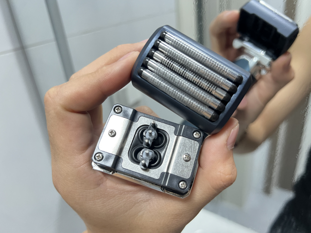 未野MRX的剃须逻辑是:五层刀片最中间的刀网,有理须功能,胡须在讲过前两层刀片后,可能方向有些紊乱,如果不理顺胡须,就容易导致胡须的长短、方向参差不齐,未野MRX就在中间刀网采用了DSE梳理技术,将胡须理顺后再送给下面的刀片,也在刀网上采用了顺滑的舒适涂层,使用起来很顺滑,不会伤到皮肤,这点设计还是非常人性化的。