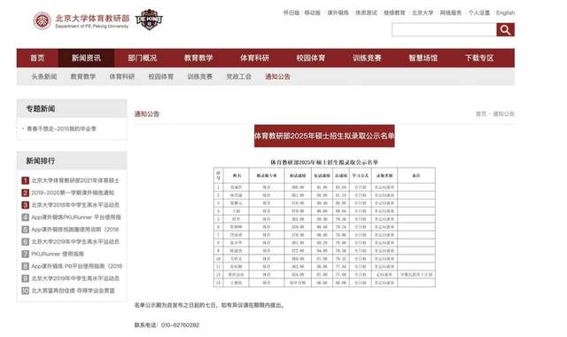 25岁的王楚钦是国乒男队的绝对主力,在马龙樊振东退出世界排名后,王楚钦就是毫无争议的国乒男队一哥!而王楚钦的优秀不仅仅在乒乓球领域,北京大学体育教研部公布2025年硕士招生拟录取公示名单,王楚钦榜上有名,初试成绩显示为“初审合格”,复试成绩86分,总成绩86分。