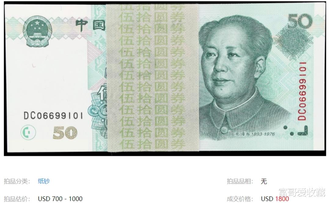 上面这一整刀的1999年50元纸币,在去年的SBP世界纸钞拍卖会中,直接拍出了1800美元。