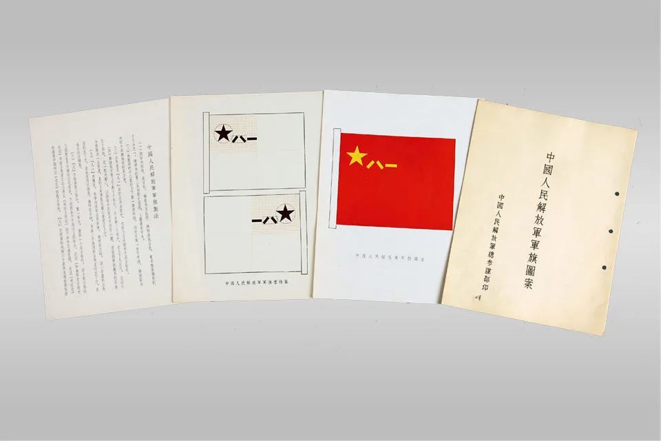 1949年6月15日,中国人民革命军事委员会主席毛泽东,副主席朱德、刘少奇、周恩来、彭德怀签署《颁布中国人民解放军军旗军徽样式》的命令。命令指出:“中国人民解放军军旗为红底,上缀金黄色的五角星及‘八一’两字,表示中国人民解放军自1927年8月1日南昌起义诞生以来,经过长期奋斗,正以其灿烂的星光,普照全国。”